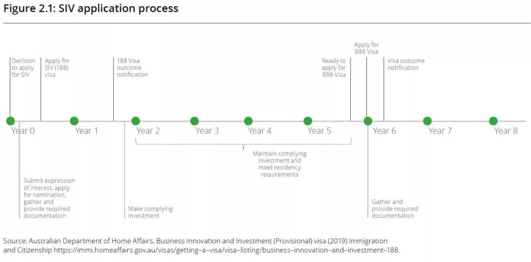 一般而言,通過SIV獲取澳大利亞永居至少需要6年。移民的關(guān)鍵步驟見上圖Figure 2.1。