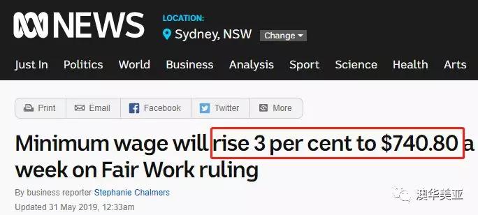 從7月1號(hào)開始,澳洲將再次上調(diào)最低工資,全國最低工資標(biāo)準(zhǔn)將上調(diào)3%