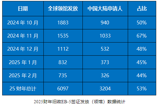 美國國務(wù)院在發(fā)布2025年1月綠卡排期時(shí),預(yù)警了EB-5新政或?qū)⒊霈F(xiàn)排期。