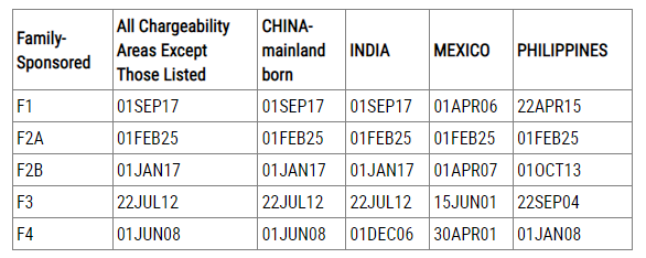 F1公民的未婚成年子女:2017年9月1日,無變化