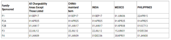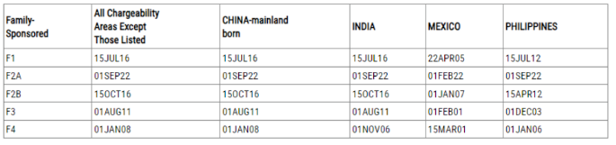 ? F2A(配偶/未成年子女),表B前進21天