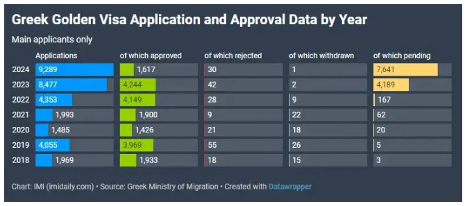 根據(jù)希臘政府公布的年度數(shù)據(jù),2024年希臘再次刷新記錄,全年共收到9289份申請,較2023年增長10%,創(chuàng)下該計劃實施以來的新高。