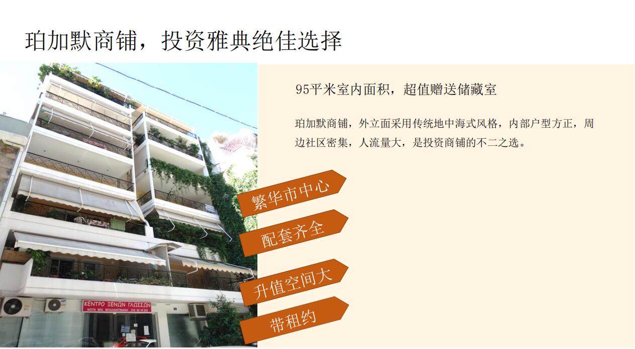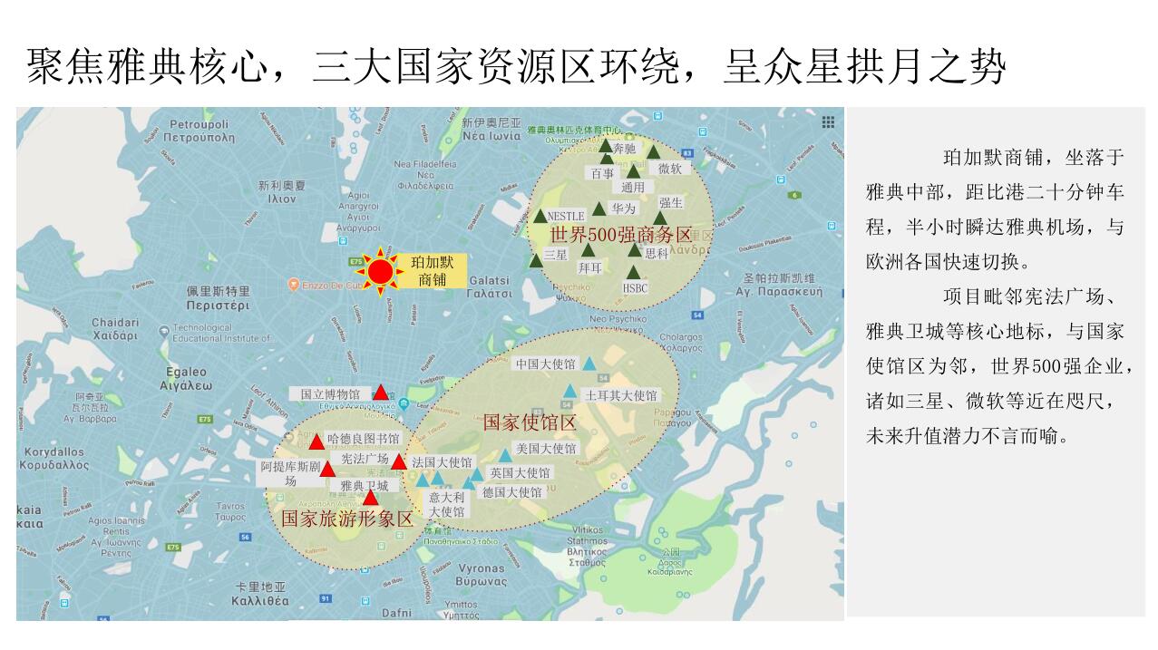珀加默商鋪,坐落于雅典中部,距比港二十分鐘車程,半小時(shí)瞬達(dá)雅典機(jī)場(chǎng),與歐洲各國(guó)快速切換。項(xiàng)目毗鄰憲法廣場(chǎng)、 雅典衛(wèi)城等核心地標(biāo),與國(guó)家使館區(qū)為鄰,世界500強(qiáng)企業(yè), 諸如三星、微軟等近在咫尺,未來升值潛力不言而喻。