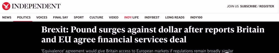 獨(dú)立報(bào):英國(guó)歐盟達(dá)成金融服務(wù)協(xié)議,英鎊飆升