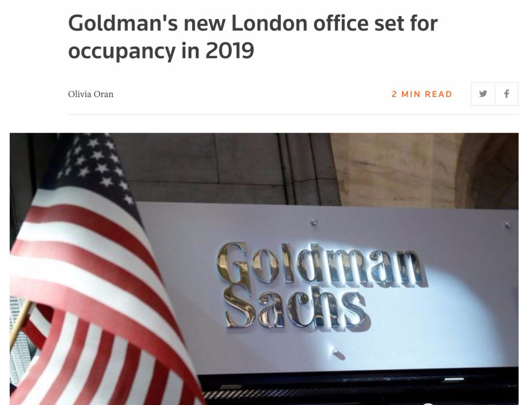 路透:高盛將于2019年搬入更大更新的倫敦新總部