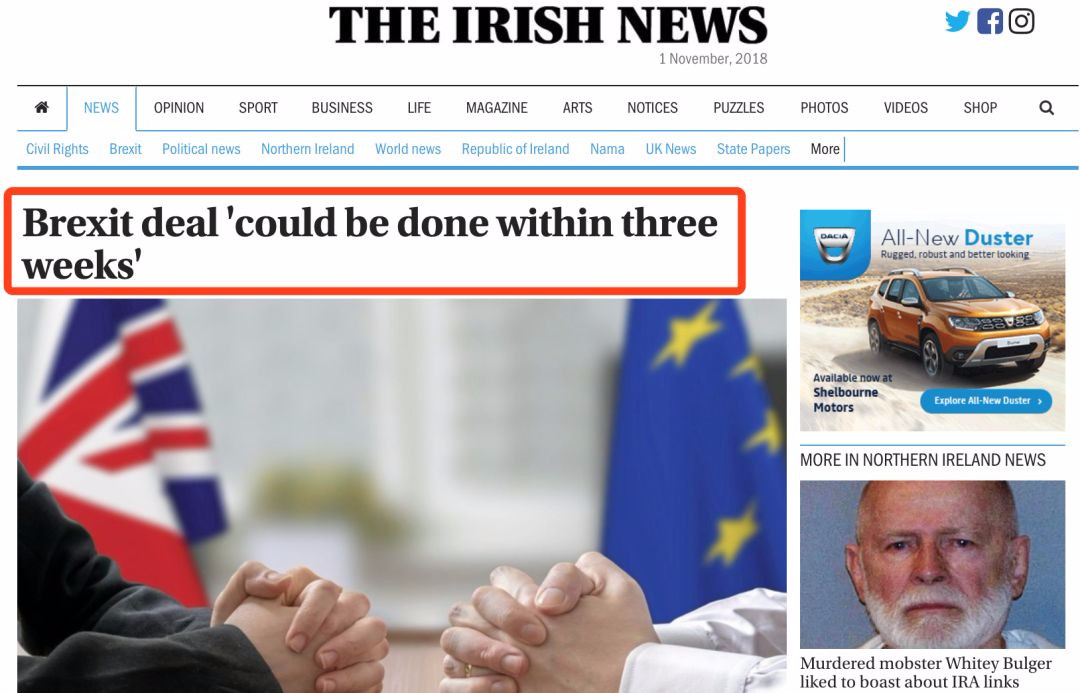 愛(ài)爾蘭新聞:脫歐協(xié)議將在三周內(nèi)完成