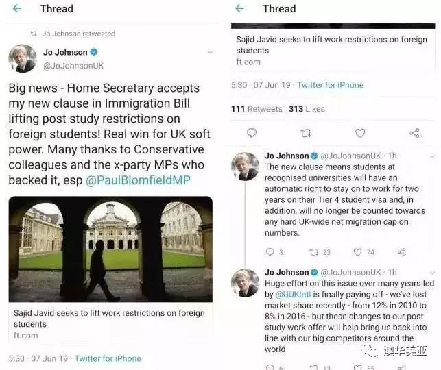 最近,英國(guó)事關(guān)留學(xué)生幸福的“PSW簽證重啟”又刷了個(gè)屏,只因?yàn)橛?guó)議員Jo Johnson發(fā)了這么一條推特:
