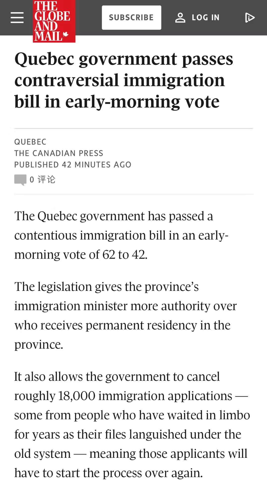 加拿大當(dāng)?shù)貢r(shí)間6月16日,魁北克議會凌晨以62:42投票,通過了曾備受爭議的“九號法案”(Bill 9)。在2018年8月2日前提交的18000份“魁北克常規(guī)技術(shù)移民”申請全部作廢,約5萬名希望移民魁北克的人受到影響。由此,魁北克移民法將迎來一系列的全新變革。