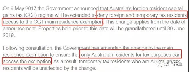 修改為:只有澳洲稅收居民才可以繼續(xù)享受這個(gè)豁免政策,非澳洲稅收居民必須全額繳納房產(chǎn)增值稅。
