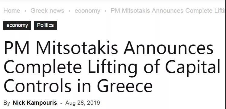 當(dāng)?shù)貢r(shí)間8月26日下午,希臘總理米佐塔基斯在希臘議會發(fā)表講話時(shí)宣布,從現(xiàn)在起,歷時(shí)50多個(gè)月的希臘資本管制(時(shí)期)已經(jīng)結(jié)束。對希臘這個(gè)國家來說,一個(gè)前景樂觀的周期已經(jīng)開始。