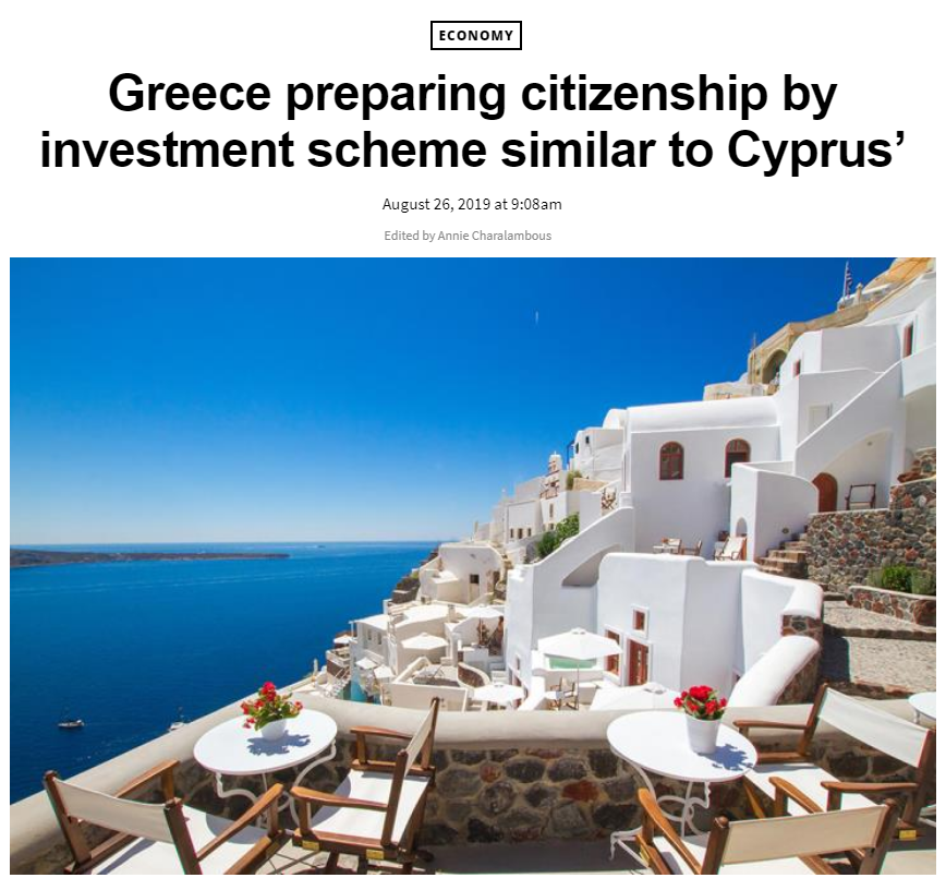 同樣是8月26日,據(jù)塞浦路斯當(dāng)?shù)孛襟w“In-Cyprus.com”報(bào)道,希臘右翼新政府正在草擬一份投資入籍計(jì)劃,參考塞浦路斯投資入籍公民計(jì)劃,但是會更有競爭力。