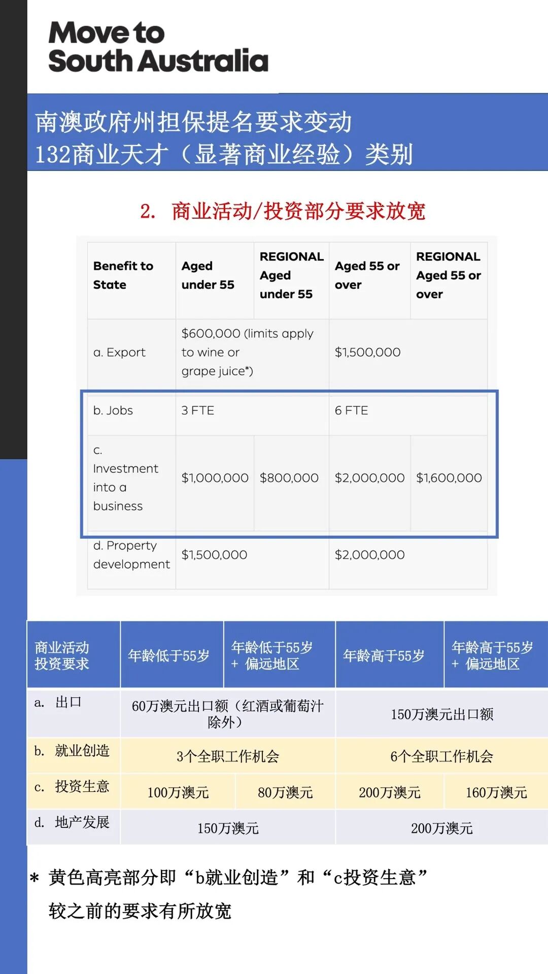 3、為南澳企業(yè)提供至少100萬(wàn)澳元的投資,或?yàn)榉康禺a(chǎn)開發(fā)商提供200萬(wàn)澳元的最低投資