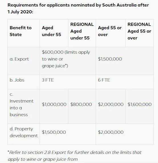 2、向南澳企業(yè)提供最低20萬(wàn)澳元的投資。(房地產(chǎn)開發(fā)商150萬(wàn)澳元)見下文投資標(biāo)準(zhǔn)。
