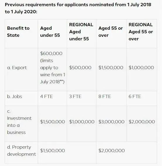 根據(jù)客戶的年齡、業(yè)務(wù)類型和所在地的不同,州政府的貢獻(xiàn)要求也會(huì)有所不同。您必須在持有簽證的頭兩年內(nèi),通過您在南澳的業(yè)務(wù)至少滿足一條所列要求。在兩年期的評(píng)估中,您必須提供證據(jù)證明您對(duì)本州是有貢獻(xiàn)的。請(qǐng)參考下列新舊政策對(duì)比。