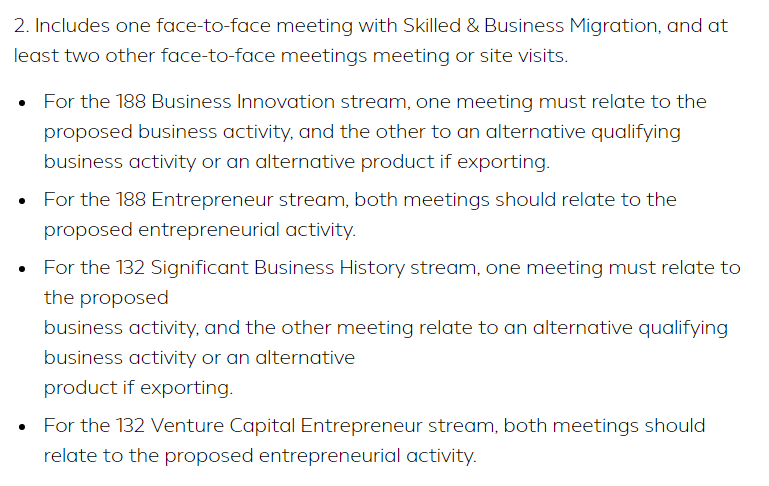 2、包括一次與南澳技術(shù)和商業(yè)移民部門的面對(duì)面會(huì)議,以及至少兩次其他面對(duì)面會(huì)議或?qū)嵉乜疾臁?/strong>