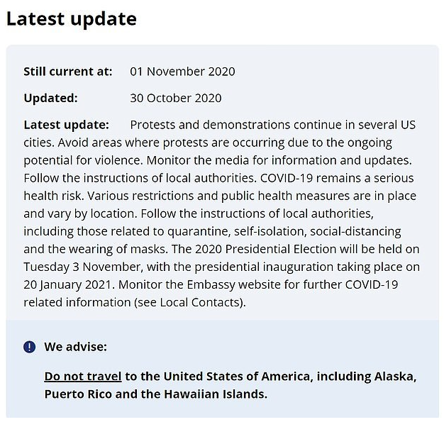 SmartTraveller專門(mén)為美國(guó)大選可能引發(fā)的混亂發(fā)布了一份聲明: