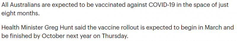 3月開始接種疫苗 圣誕之前最大的好消息出現(xiàn)了:政府官宣,疫苗運(yùn)輸合同已經(jīng)正式簽訂。這意味著接種時(shí)間不再是理論數(shù)據(jù),而是確定了執(zhí)行日期。 聯(lián)邦衛(wèi)生部長(zhǎng)Greg Hunt今天早上宣布:輝瑞疫苗以及AstraZenenca疫苗將于明年3月開啟接種。 而且澳洲政府已經(jīng)與DHL和Linfox簽署了疫苗運(yùn)輸合同,從3月份開始,疫苗將會(huì)由專門的運(yùn)輸卡車送往澳洲各個(gè)地區(qū)。 之前疫苗接種時(shí)間無(wú)法完全確定,一來(lái)是因?yàn)檫€沒有完整的接種數(shù)據(jù)證明其安全性。其次是因?yàn)橐呙邕\(yùn)輸難度較大。 特別是輝瑞疫苗,需要在零下70攝氏度的低溫環(huán)境中儲(chǔ)存才能確保功效,經(jīng)過長(zhǎng)時(shí)間的準(zhǔn)備,澳洲已經(jīng)滿足了運(yùn)輸條件。 Greg Hunt透露,運(yùn)輸過程疫苗將會(huì)由特制干冰容器儲(chǔ)存,這也是目前美國(guó)正在使用的運(yùn)輸方式。 (圖片來(lái)源:7news) 目前,澳洲簽訂購(gòu)買的疫苗總數(shù)已達(dá)1.17億支,可以完全覆蓋澳洲全部人口。 之前一直計(jì)劃的3月接種也確認(rèn)落實(shí)。 疫苗交付后,由3月起,開始第一輪接種,主要接種人群為老年人、衛(wèi)生工作者以及在各州酒店檢疫系統(tǒng)工作的一線員工。 第二輪疫苗接種將于明年4月開始,5月進(jìn)行第3輪,然后依次進(jìn)行,到10月進(jìn)行第8輪接種。 8輪接種可以實(shí)現(xiàn)全民覆蓋,到時(shí)候澳洲疫情將被終結(jié)。 有過敏史患者不得接種疫苗 雖然全民免費(fèi)接種是個(gè)天大的好消息,但新冠疫苗并非真的對(duì)全民有效。 英國(guó)和美國(guó)都有志愿者在接種疫苗后出現(xiàn)了劇烈反應(yīng),經(jīng)證實(shí)他們都有過過敏史。 英國(guó)衛(wèi)生局隨即給出建議:過敏癥患者,尤其是過去曾患過敏性休克的人,應(yīng)暫停接種疫苗。 過敏性休克指的是對(duì)食品、藥物或疫苗的"嚴(yán)重過敏性反應(yīng)",是人體的一種完全可能致命的激烈過敏反應(yīng)。在所有已知過敏反應(yīng)中,它是最強(qiáng)烈的一種。 而澳洲有太多人存在過敏史,這部分人群或許都暫時(shí)無(wú)法接種疫苗。具體解決方案還要等待進(jìn)一步研究。