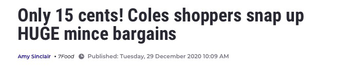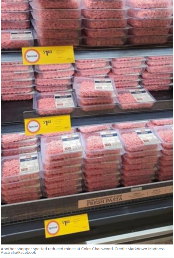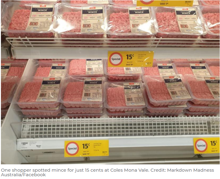 這是位于Mona Vale的Coles內(nèi)發(fā)現(xiàn)的超低價牛肉餡,這位顧客看到以后,第一時間拍了照片發(fā)到網(wǎng)上。并留言:我的晚餐,全部成本不到1刀...