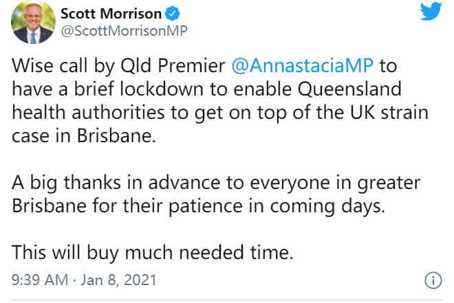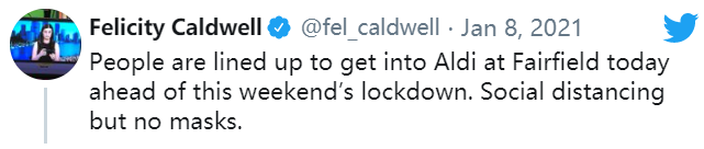 酒店檢疫人員確診, 感染英國變異毒株 就在昨天,突然出現(xiàn)的1例本土傳播病例,打破了昆州連續(xù)113天無本土新增的記錄。 據(jù)悉,確診的患者為布里斯班隔離酒店的一名酒店檢疫工作人員。 而這名工作人員被診斷出 感染了英國變種冠狀病毒! (圖片來源:7 News) 專家認為,這種變異病毒的毒性比基型病毒高70%。迄今為止,只在回國的旅行者身上發(fā)現(xiàn)過這種變異病毒。 這是澳大利亞首次報道感染英國變異毒株的社區(qū)傳播。 (圖片來源:7 News) (圖片來源:7 News) 據(jù)了解,這名女性患者在周三早些時候報告出現(xiàn)癥狀后,于周三晚上確診。 首席衛(wèi)生官Jeannette Young昨天在發(fā)布會上表示,正在對這例病例進行緊急的基因組測序,以確定這是否是另一種具有傳染性的英國毒株。 周四下午晚些時候,測試結(jié)果顯示確實為變異毒株。 根據(jù)衛(wèi)生部門公布的信息,這名患者在 Grand Chancellor Hotel酒店工作,住在Alegester,有五天的潛在傳染性。 同時,衛(wèi)生部門還公布了患者曾經(jīng)前往的高風險場所: 1月2日7:00am,乘坐火車從Altandi站抵達Roma St站; 1月2日4:00pm,乘坐火車從Roma St站返回Altandi站; 1月3日11:00am-12:00am,Calamvale Central購物中心,Woolworths; 1月5日7:30am,Sunnybank Hills,Coles; 1月5日8:00-8:15am,Sunnybank Hills Shopping Town的報刊店。 凡是在以上時間,前往這些地點的布里斯班居民,以及與患者同住在一個地區(qū)的居民,都必須立刻接受檢測,并且在得到陰性結(jié)果之前,進行居家隔離。 對于這個病例,昆州政府采取了非常謹慎的態(tài)度。特別是在確定了這名患者感染的是傳染性比其他病毒高出70%的變異毒株之后。 就在昨天晚上出現(xiàn)結(jié)果后,昆士蘭衛(wèi)生部門已采取行動,限制探訪者進入老年護理、醫(yī)院、殘疾服務和教養(yǎng)設(shè)施,并且立即實施。 而今天早上的發(fā)布會上,更加嚴格的封鎖措施上線! #02: 澳洲第三大城市封鎖3天, 非必要場所關(guān)閉 剛剛,昆州州長Annastacia Palaszczuk宣布,大布里斯班將進入3日封鎖期! (圖片來源:網(wǎng)絡) 州長表示,根據(jù)昆州首席衛(wèi)生官Jeannette Young的建議,現(xiàn)在開展3天的封城能夠阻止布里斯班未來進入30天的封城。 我們將采取早期且嚴厲的措施,以避免疫情失控的情況發(fā)生。 據(jù)報道,此次封鎖范圍包括Metro North、Metro South、West Moreton Hospital以及Health Services——布里斯班、Ipswich、Moreton、Logan以及Redlands市議會轄區(qū)。 封鎖令將于今晚6點生效,預定于下周一晚6點解除。 所有居住在上述地區(qū)的居民必須要求待在家里,要出門必須符合以下幾個主要理由: 在家無法進行的工作或?qū)W習; 為必要人員提供醫(yī)療服務; 進行必要的購物,比如食品或藥品; 在當?shù)厣鐓^(qū)鍛煉。 如果發(fā)現(xiàn)違反公共衛(wèi)生法令的任何人,包括無合理理由而出門的人,將被處以$1300的罰款。 另外,根據(jù)Young的建議,3天封鎖期內(nèi),所有上述地區(qū)的居民離家時將強制性戴口罩。 對于那些不遵守口罩佩戴令的人,警方則將會處以$200的罰款。 (圖片來源:Twitter) 所有在1月2日之后去過大布里斯班地區(qū)的人,如果現(xiàn)在已經(jīng)離開這一地區(qū),被要求自我隔離三天。 首席衛(wèi)生官Jeannette Young博士表示,下周一之前,大布里斯班居民還將受到進一步的限制。 目前已經(jīng)頒布的限制措施包括: 葬禮僅限20人; 婚禮僅限10人; 咖啡館,酒吧和餐館將只能提供外賣服務; 養(yǎng)老院,監(jiān)獄,殘疾人士住宿和醫(yī)院不接受任何訪客; 美發(fā)沙龍,電影院,體育館等非必要業(yè)務“暫?!敝料轮芤?; 所有社區(qū)和有組織的體育活動暫停; 禮拜場所關(guān)閉。 州長表示,民眾應該做好“在家里過周末”的準備。 總理莫里森也對昆州反應迅速的封鎖措施表示贊賞。 莫里森在Twitter上寫道: 短暫封鎖是明智的決定,以使昆士蘭州衛(wèi)生部門能夠處理在布里斯班感染英國變異病毒的病例。 提前向布里斯班的每個人表示感謝,感謝他們在未來幾天的耐心等待。這將為防控贏得時間。 #03: 超市大排長龍, 民眾為封鎖做準備 隨著昆州州長Annastacia Palaszczuk“一聲令下”開始封鎖,布里斯班的超市大早上就突然開始忙碌起來。 居民紛紛前往超市,為今天晚上6點開始的為期三天的封鎖做準備。 昆州政治通訊員Felicity Caldwell在社交媒體上發(fā)帖表示,今天早上人們排隊進入 Fairfield的Aldi,保持了安全距離,但尚未戴口罩。 (圖片來源:Twitter) 她說,F(xiàn)airfield Coles商店是“我所見過的最繁忙的商店”,因為結(jié)帳的長隊延長了在商店購物的時間。 昆士蘭州政府宣布這一消息后不到15分鐘,在Greenslopes購物中心Coles外面開始排隊。 從現(xiàn)場拍攝的圖片可以看到,超市已經(jīng)擠滿了前來購物的民眾。 (圖片來源:Twitter) 貨架上的食物基本就已經(jīng)被搶購一空。 (圖片來源:Twitter) 不過經(jīng)歷了不少大風大浪的民眾,這回也是理性了不少。廁紙竟然“幸存”了! (圖片來源:Twitter) 昆士蘭州首席衛(wèi)生官Jeannette Young告訴民眾不要驚慌失措。 絕對沒有問題,我們所有的商店都有足夠的存貨,沒有什么可以阻止這種情況的發(fā)生。 沒有必要恐慌性購物。如果接下來的三天你家里有足夠的東西,那就待在家里等到下周購物。 最后 新冠病毒真是無孔不入,就連千防萬防的變異病毒,也還是逃出