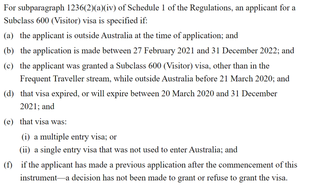 根據(jù)內(nèi)政部頒布的最新規(guī)定,只要同時滿足這些條件,申請人就可以免費申請600旅游簽: (1)申請人在遞交申請時需要在澳洲境外; (2)遞交申請的有效期為2021年2月27日至2022年12月31日之間; (3)2020年3月21日之前,申請人在澳大利亞境外獲得600旅游簽證,但不屬于10年旅行簽證類別; (4)簽證已于或?qū)⒂?020年3月20日至2021年12月31日期間到期; (5)之前在境外獲取的旅行簽證為多次入境簽證;沒有用于進(jìn)入澳大利亞的單詞入境簽證; (6)申請人在新規(guī)生效后已提出申請,且尚未作出批準(zhǔn)或拒絕批準(zhǔn)簽證的決定。 (圖片來源:澳洲移民局) 這里要給大家劃一下重點: 免費簽證必須在境外申請;且同時滿足三個時間段的簽證要求; 并且長期旅行簽證不在免費的范圍內(nèi);而且理論上不管是最后獲批還是被拒,這個簽證只能免費申請一次,除非中途撤銷申請或是申請無效。 (圖片來源:網(wǎng)絡(luò)) 雖然作為一個臨時簽證,就算目前免費申請之后得到批準(zhǔn),因為邊境限制的關(guān)系,也還不知道什么時候能夠入境。但是對以后有需要來澳洲的小伙伴,“免費申請”這一點還是非常棒的。 而且澳洲移民局突然就宣布簽證免費申請了,也讓人不得不猜測,邊境開放是不是已經(jīng)在日程上了?