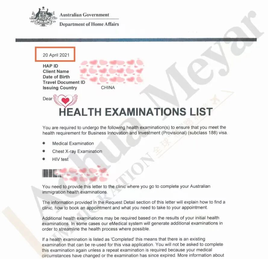 本月,澳華美亞188B客戶Y女士全家收到了188B體檢函,根據(jù)郵件內(nèi)容顯示,她們要在指定的時間完成體檢,并把相應(yīng)的材料遞交給移民局,等待下一步的通知!