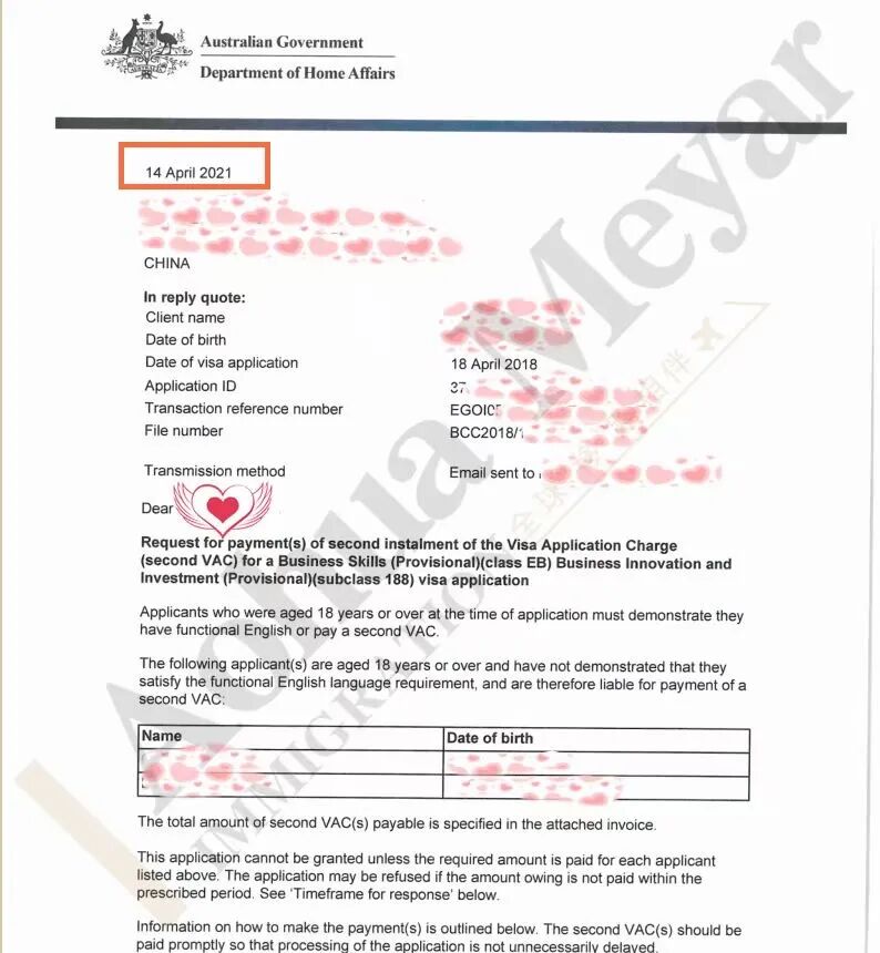 澳華美亞另一組188A客戶也收到了移民局繳納英語費用的通知,雖然澳洲還未全面開放邊境,但是移民局的工作在逐漸恢復(fù)正常,效率也有明顯提升。