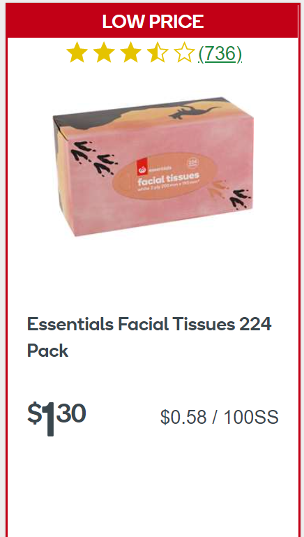 有網(wǎng)友表示,Woolworths的這款紙巾,原來只要幾毛錢,疫情期間漲到了1澳元,最近去超市突然發(fā)現(xiàn)漲價到了1.3澳元。