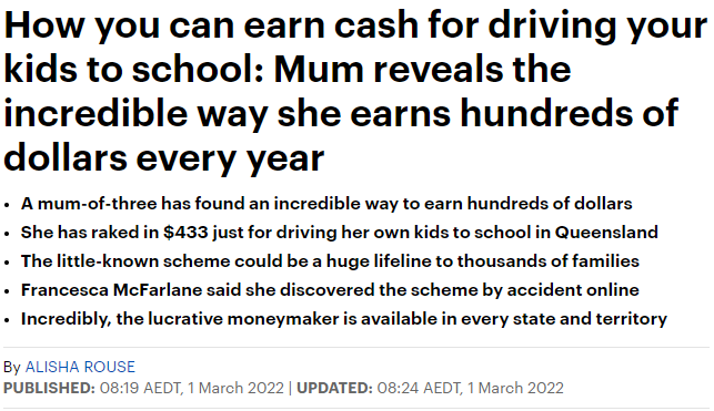 在澳洲,開車送娃上學(xué)放學(xué),竟然也能領(lǐng)錢?!