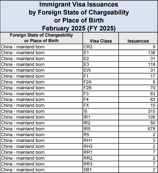 近日,美國國務(wù)院在其官網(wǎng)上發(fā)布了2025年2月份的海外領(lǐng)館移民簽證發(fā)放數(shù)據(jù)。