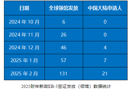 數(shù)據(jù)顯示,2月份全球各地中國出生的申請(qǐng)人,在舊政EB-5類別上,共計(jì)獲得了326張海外使領(lǐng)館發(fā)放的移民簽證。這一數(shù)字與今年1月份的373張相比,繼續(xù)有所下降。