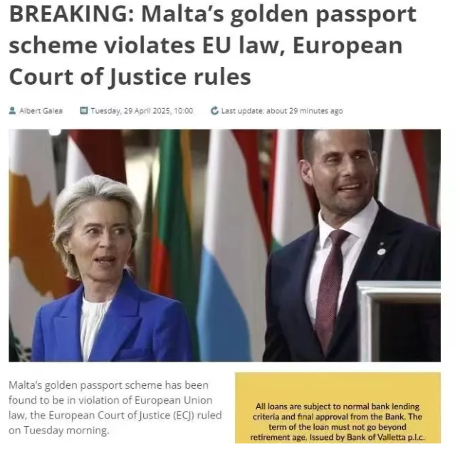 2025年4月29日,歐洲法院對馬耳他投資入籍計劃作出終局裁決,認(rèn)定其投資入籍計劃(又稱 “黃金護(hù)照” 計劃)違反歐盟法律,并譴責(zé)通過“預(yù)設(shè)支付或投資金額換取國籍”的做法,是在將歐盟身份商業(yè)化。