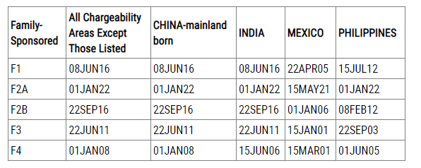 F2B公民的成年已婚子女:2017年1月1日,無變化