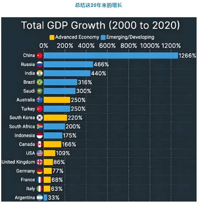 可以說(shuō),二十多年的風(fēng)云變幻中,中國(guó)的GDP增速是全球最快的。