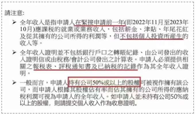 申請(qǐng)人如果計(jì)劃以公司業(yè)務(wù)收入作為高才通A類的收入證明,必須確保在遞交申請(qǐng)前的整個(gè)評(píng)稅年度內(nèi)持續(xù)持有相關(guān)公司股份。這意味著,申請(qǐng)人須在遞交申請(qǐng)前的整個(gè)評(píng)稅年度持續(xù)持有相關(guān)公司股份,方可將公司利潤(rùn)納入年度收入計(jì)算范疇。