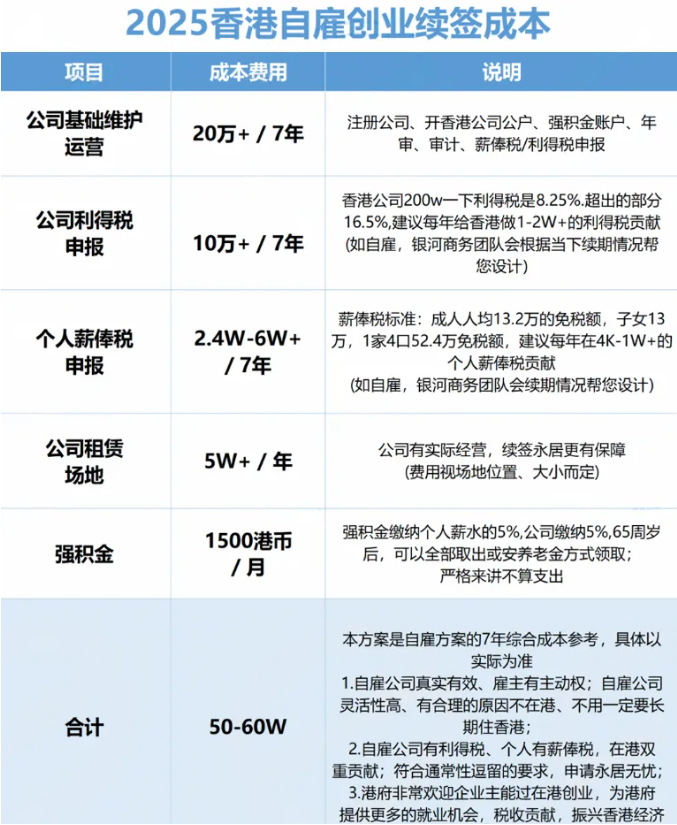 香港身份創(chuàng)業(yè)自雇續(xù)簽成本參考表: