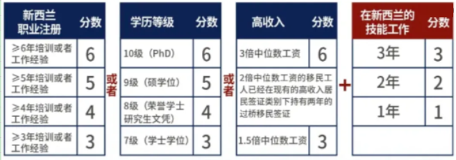 比如碩士以上學歷能獲得5分,那么只需要在新西蘭本地積累一年的工作經(jīng)驗就能達到6分。