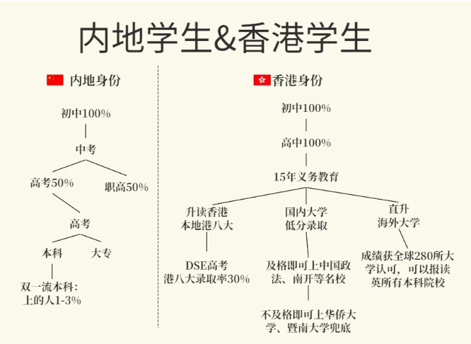 而眾多人才家長競相送孩子來香港,就是因?yàn)?/span>香港的教育優(yōu)勢!香港學(xué)生沒有中考分流的壓力,上大學(xué)還有多種升學(xué)途徑保底,為孩子的未來發(fā)展提供了更多可能。