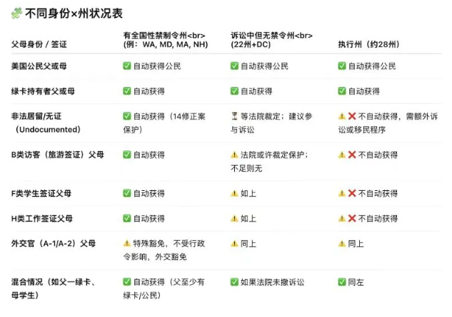 ? 無合法身份或?yàn)槎唐诤炞C+孩子出生在非原告州:高風(fēng)險(xiǎn)預(yù)警,孩子極可能無法獲得美籍。