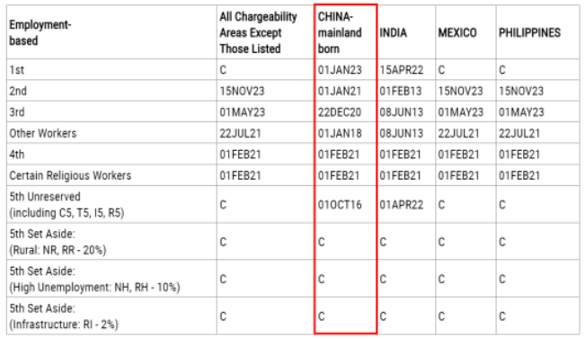 EB-5預(yù)留簽證類別:無排期;