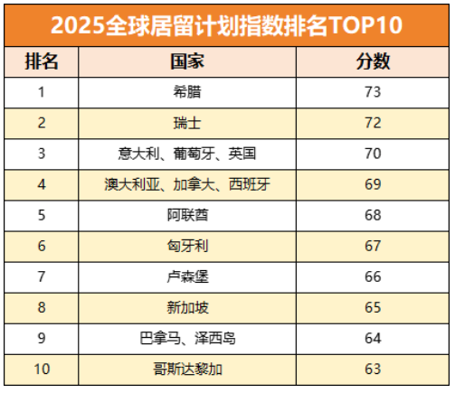 以上就是《2025年全球居留計劃指數(shù)》上榜的TOP10國家啦,各國的項目優(yōu)勢與特點不一。