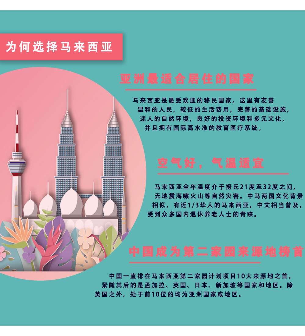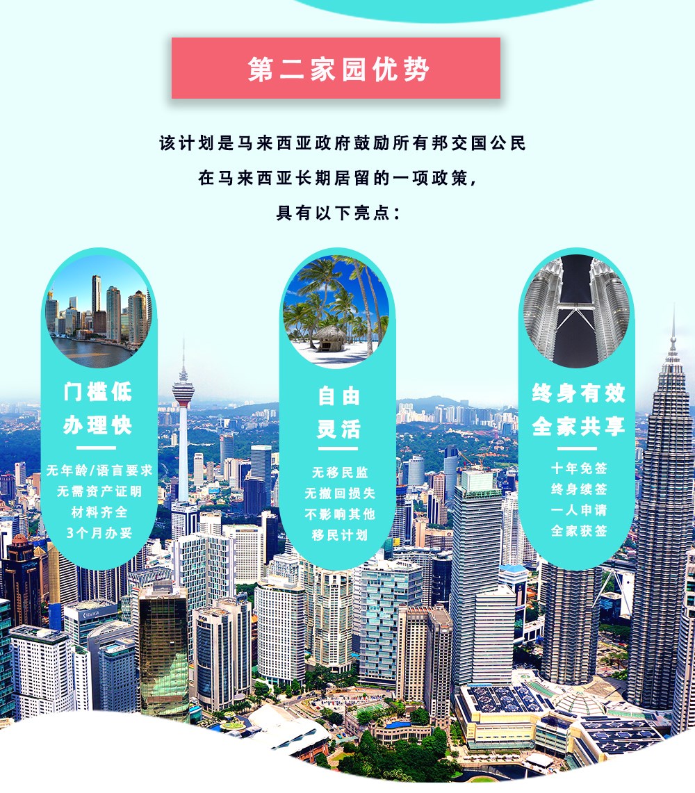 馬來(lái)西亞第二家園計(jì)劃是馬來(lái)西亞政府為吸引外國(guó)資金、促進(jìn)旅游、發(fā)展經(jīng)濟(jì)而出臺(tái)的一項(xiàng)長(zhǎng)期政策,目的是鼓勵(lì)外籍人士在馬來(lái)西亞長(zhǎng)期居住和投資。